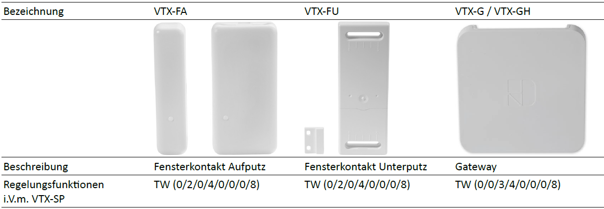 Somit bietet die Erweiterung der obigen Kombination durch Fensterkontakte VTX-FA/ VTX-FU die Regelungsfunktion:
