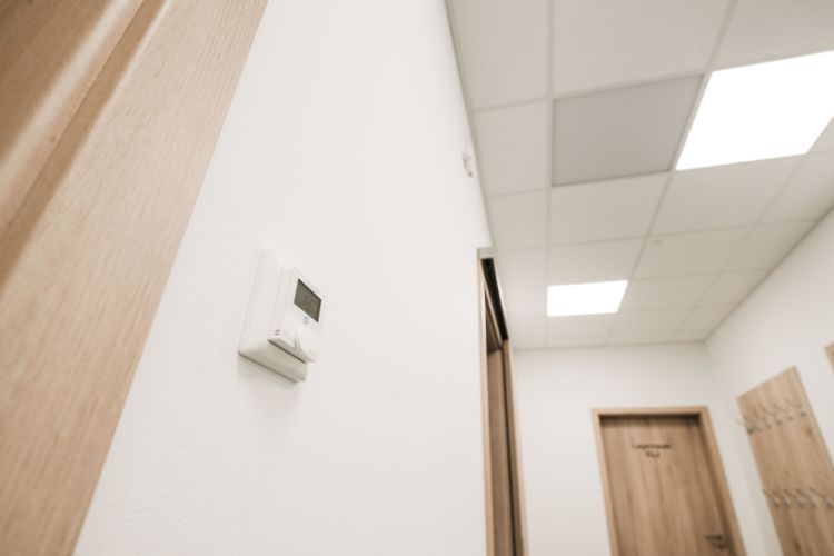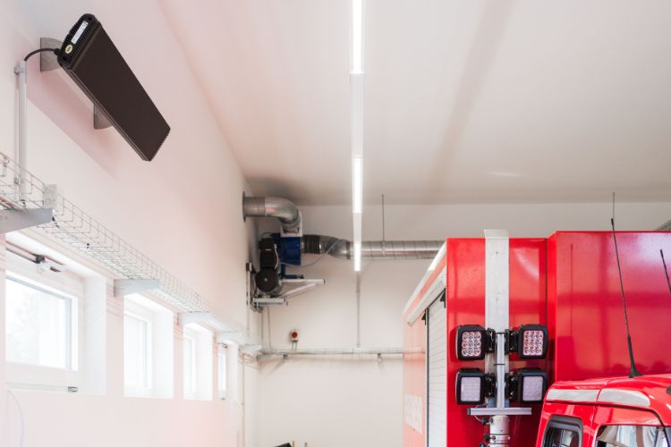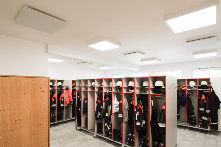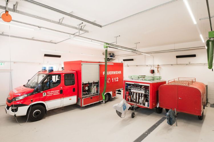 Der Neubau ist als „All-Electric-Feuerwehrhaus“ konzipiert – vollständig elektrisch betrieben und auf höchste Energieeffizienz ausgelegt. Eine Infrarotheizung sorgt in den Gemeinschafts- und Umkleideräumen für behagliche Wärme, während Infrarot-Dunkelstrahler in der Fahrzeughalle zum Einsatz kommen. Die Warmwasserbereitung erfolgt über elektrische Durchlauferhitzer. Gesteuert wird das gesamte Energiesystem über eine intelligente Smart-Home-Regelung, die eine bedarfsgerechte Beheizung ermöglicht. So lassen sich die Räume bequem per Smartphone von der Grundtemperatur auf die gewünschte Wohlfühltemperatur bringen. Eine Photovoltaikanlage mit 25 kWp Leistung versorgt das Gebäude zusätzlich mit umweltfreundlichem Strom.